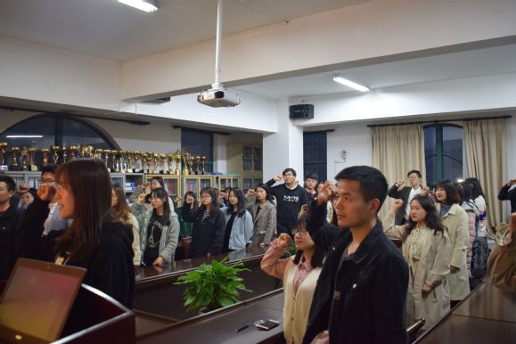 党员义务辅导员班由16级学生党员组成,旨在充分发挥党员模范带头作用,引导党员牢固树立“我是党员我奉献”的服务意识,选拔优秀学生党员为18级学生在学习、学科竞赛、社会实践、科研项目申请等方面进行义务辅导,以期在提高大一新生学习成绩的同时也为新生尽早适应大学生活、找到适合的学习方式提供帮助。吴琼强调党员应时刻牢记入党誓言,不忘初衷,在生活学习中以党员标准严格要求自己,要充分发挥大学生党员的先锋模范作用,在自己学好专业知识和各项基本技能,完成学习任务外,要尽最大的努力去帮助其他同学,提高党员责任感和使命感。她向全体学生党员提出四点要求:一是要坚定共产主义信念,树立正确的世界观、人生观、价值观;二是要勤奋学习,不断提高自身综合能力素质;三是要立足岗位,改进作风,发挥党员先锋模范作用;四是要发扬主人翁精神,积极发挥能动性,创新完成各项任务,唯有这样,才能真正做到从思想上入党,为共产党员争光添彩。随后,全体党员起立,重温入党誓词,进一步了强化党的观念,增强了党员社会责任感和使命感。
