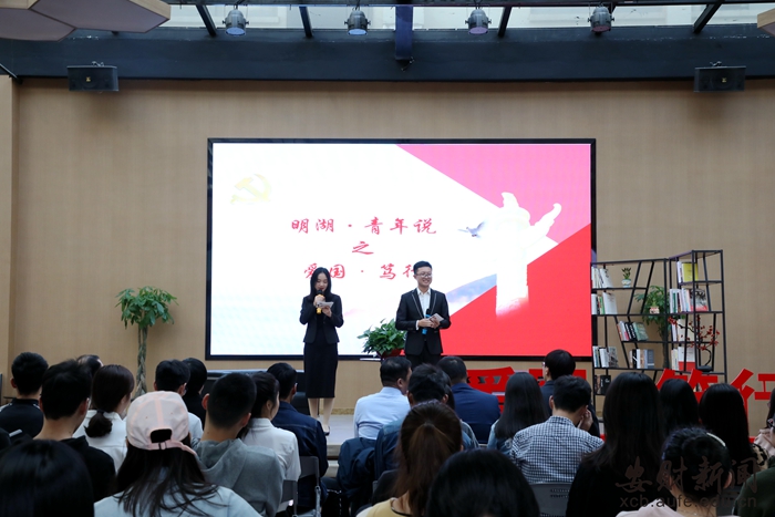 “我的祖国,高山巍峨,你有一个神圣的名字,那就是中国!你创造了辉煌的历史,你养育了伟大的民族……”10月30日下午,在学校艺术楼科普曼多功能厅,一群年轻人正深情演绎配乐诗朗诵《我的祖国》,这里正在举行学校首届研究生“明湖•青年说”主题沙龙活动。本次活动以“爱国•笃行”为主题,由学校党委研究生工作部主办、学校研究生会承办,活动在最轻松的氛围下让青年教师和青年学生敞开心扉,以最质朴的语言,最真诚的方式,畅谈爱国之情、报国之志、强国之行,真情告白祖国。