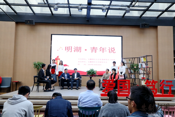 据学校研究生院院长、党委研究生工作部部长宋马林教授在活动致辞中介绍,此次“明湖•青年说”主题沙龙活动是校党委研究生工作部在庆祝中华人民共和国成立70周年之际,按照“不忘初心、牢记使命”主题教育中加强爱国主义教育、弘扬爱国主义精神要求,结合学校主题教育部署,面向青年师生组织开展的爱国主义、理想信念教育活动。活动既是一次深刻的爱国主义教育课,也是一堂生动鲜活的思政课。“青年说”强化了师生交流互动,导师或为学生答疑解惑,或为学生指点迷津,充分发挥了学生的主体性,台上台下师生就“爱国•笃行”主题热烈交流探讨,把爱国主义、理想信念教育与主题教育更加紧密结合并富有诗性地表达出来,不断深化广大研究生对中国共产党初心使命深刻内涵的理解,进一步激发广大青年学生爱党、报国、荣校情怀。师生间的情感交融使大家在“沉浸式”精神洗礼中自觉将个人“小我”融入祖国“大我”,将共产党人的初心和使命通过爱国主义教育方式根植于广大青年心中,引发了师生的情感共鸣,真正做到将爱国爱校内化于心、外化于行,入情、入理、入心,切实提升“不忘初心、牢记使命”主题教育的针对性、示范性、实效性,推动主题教育走深走实。
