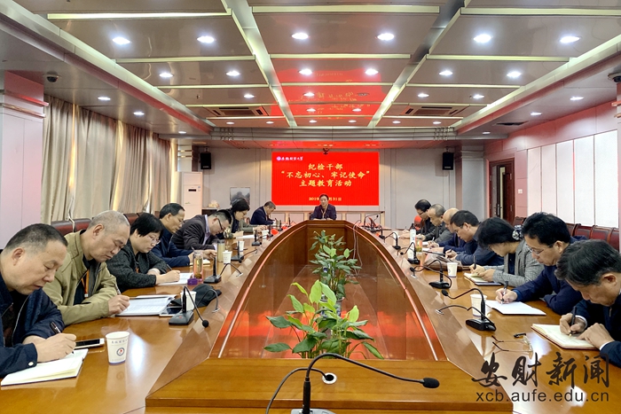 宣扬强调,纪检干部在90多年的历史进程中形成了基本的职责定位和特质,在推进党的自我革命、守护党的初心使命上发挥着重要而独特的作用,同时要充分认识到当前高校纪检工作和纪检干部中依然存在着问题。新时代,纪检干部要以“不忘初心、牢记使命”主题教育为契机,加强自我革命、自我改造、自我教育,忠诚于党和人民,发扬斗争精神,增强斗争本领,创新工作方式方法,用习近平新时代中国特色社会主义思想铸魂育人,贯彻党的教育方针、落实立德树人根本任务,履行好政治监督职责,努力培养担当民族复兴大任的时代新人,培养德智体美劳全面发展的社会主义建设者和接班人,为推动“安财新经管”发展战略和“三全育人”综合改革落地生效提供政治和纪律保障。